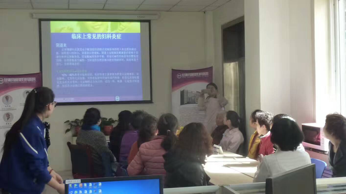 4月12日上午,甘肃玛丽亚妇科医院携手大众巷社区,开展“珍爱生命,做一个健康美丽的女人”为主题的妇科保健知识讲座活动,来自社区的工作人员及辖区居民共约20余人认真聆听了玛丽亚妇科医院青年科医生赵艳坤的精彩讲座。